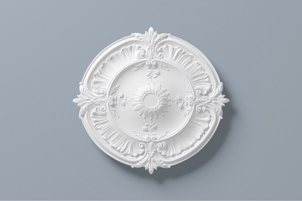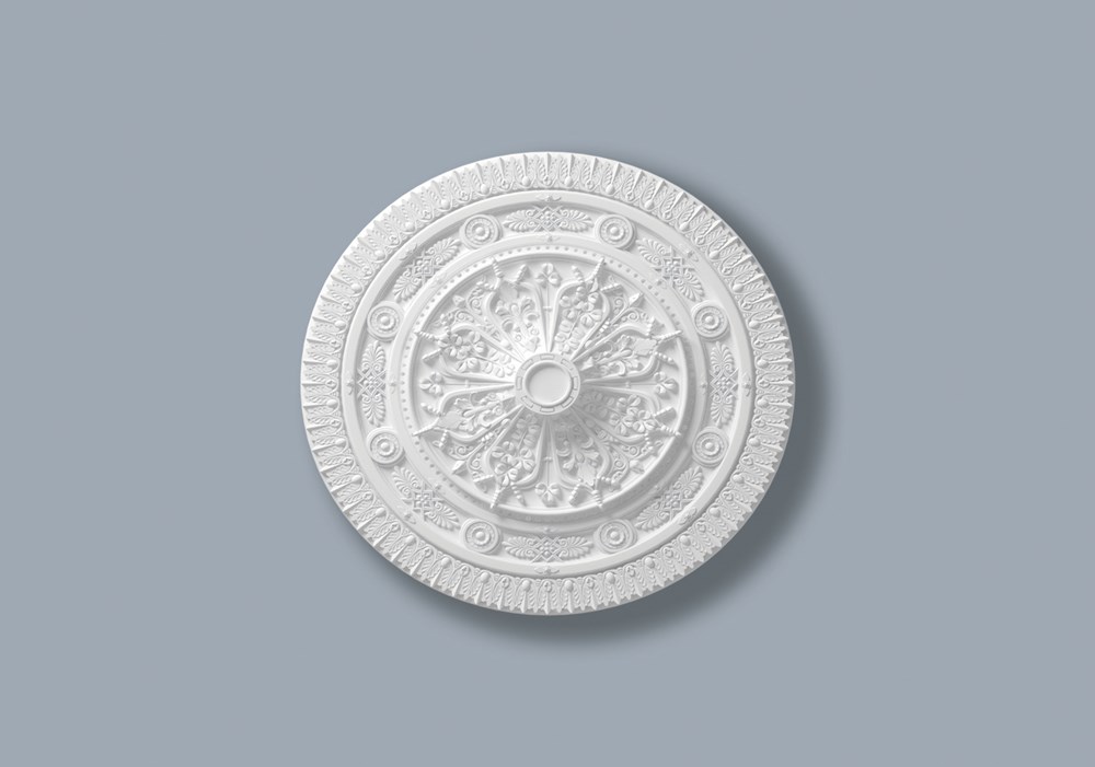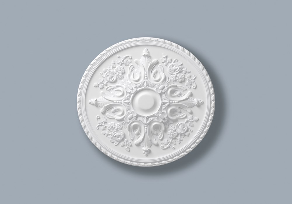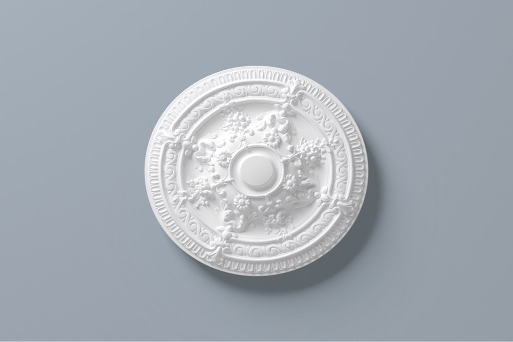 De R24 ARSTYL® rozet is een decoratief element dat in traditionele interieurs eenheid in een kamer creëert. De R24 is even elegant als een stijlvolle basis voor een sober verlichtingsarmatuur, of als aanvulling op een grote kroonluchter.